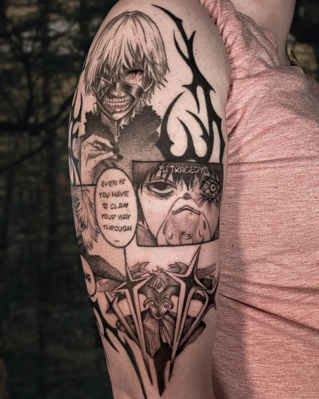 I specialize in illustrative blackwork and black-and-grey, but I’m always excited to explore different styles and new ideas — don’t be afraid to ask! :)